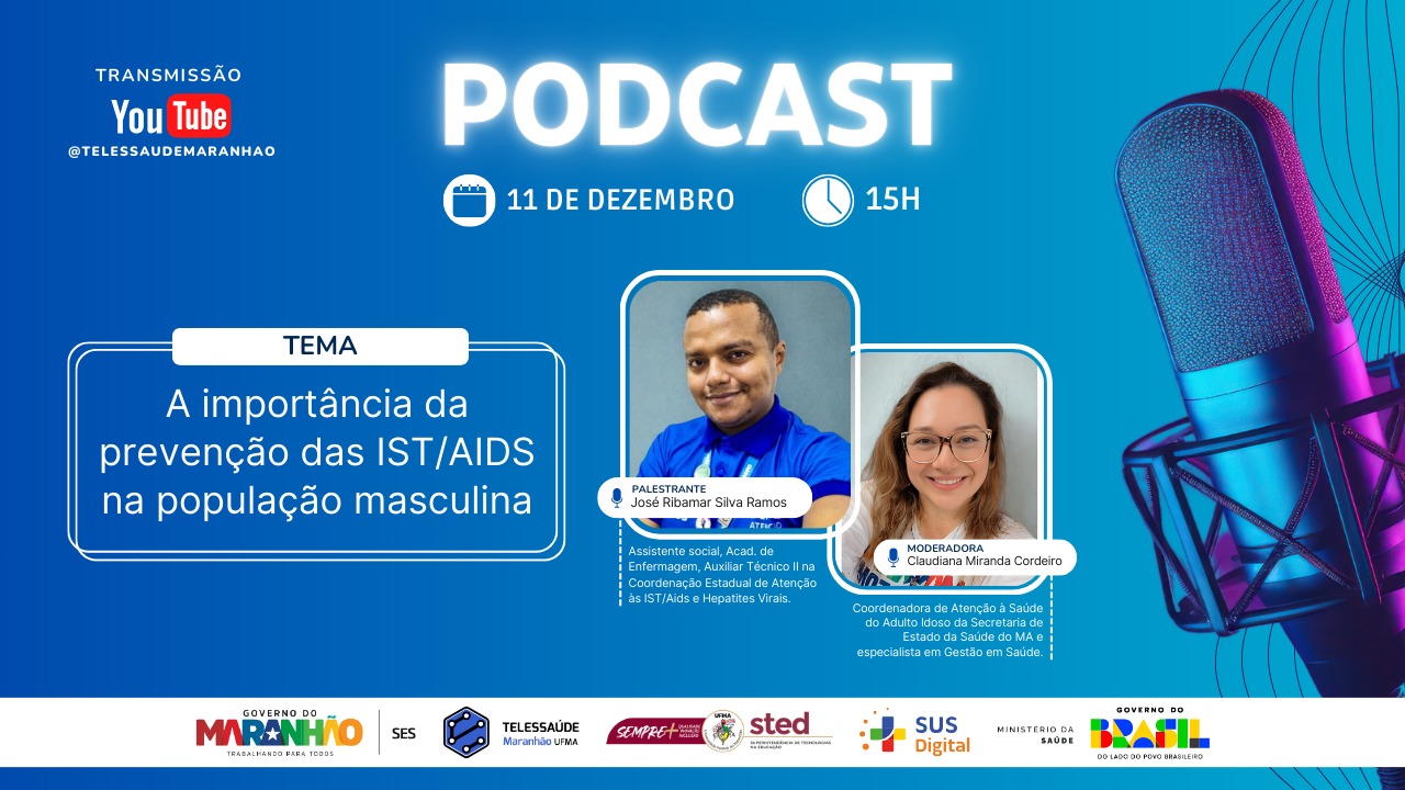 Nesta quinta-feira a conversa no Podcast Telessaúde, às 15h, será sobre a importância da prevenção das IST/AIDS na população masculina.