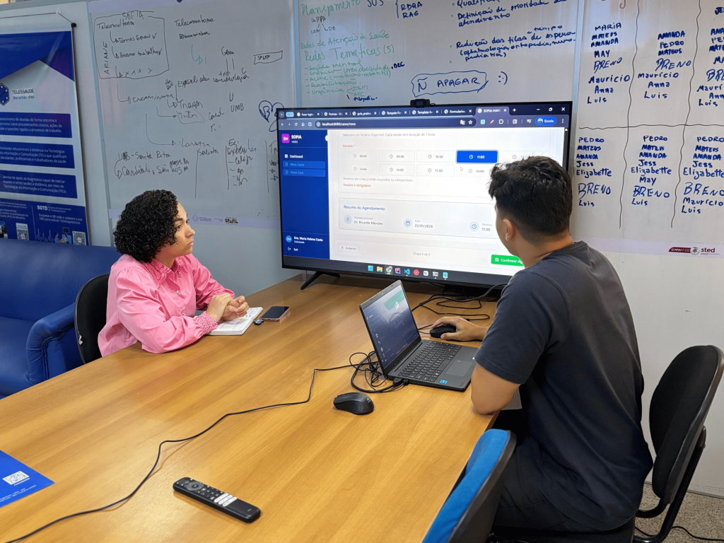 Durante a semana, o Núcleo também realizou uma capacitação para os profissionais da Secretaria Municipal de Saúde (SEMUS), com apresentação dos serviços da plataforma SOFIA e de como realizar a teleconsultoria de regulação. Durante a ação, os médicos foram orientados a realizar a solicitação dos exames de teleretinografia dentro da plataforma, fortalecendo o uso da ferramenta no apoio ao diagnóstico e à tomada de decisão na Atenção Primária à Saúde.