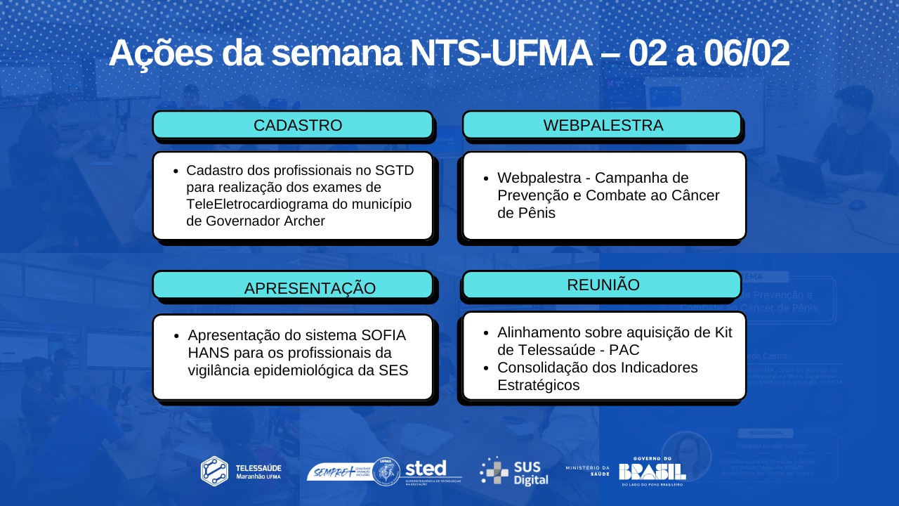 Ações da semana NTS-UFMA – 02 a 06/02
